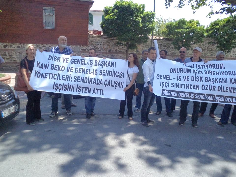 Ben Oya BAYDAK. Genel – İş Avrupa Yakası Bölgesinde çay ve temizlik işlerinde çalışmaktaydım. Ancak 1 hafta önce Genel – İş Genel Başkanı ve DİSK Başkanı Kani Beko ve Genel-İş Genel Sekreteri Remzi Çalışkan’ın imzaladığı yazıyla işten atıldığım bildirildi. Gösterilen bir gerekçe yoktu. Elime çıkış kağıdım tutuşturuldu. Bu bir utanç belgesidir. Devrimciler Kani Beko’ya ve diğer Genel – İş yöneticilerine PATRON SENDİKACISI dediklerinde kızıyorlardı. Neden kızıyorlar? Sanki bir şirketin yöneticileri işçisini işten atıyor? Bu sendikacılar kendini ne sanıyor?