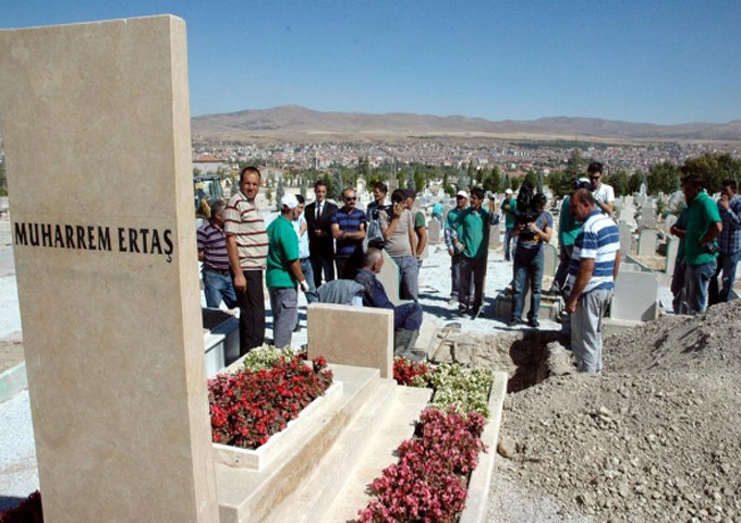 Muharrem Ertaş'ın 'İşte geldim, işte gittim. Güz çiceği gibi bittim. Yalan dünyada ne iş tuttum. Ömrüceğim geçti, gitti' yazılı mezar taşının ayak ucuna belediye görevlileri tarafından açılan yeni mazarın etrafı iş makineleriyle düzeltildi.