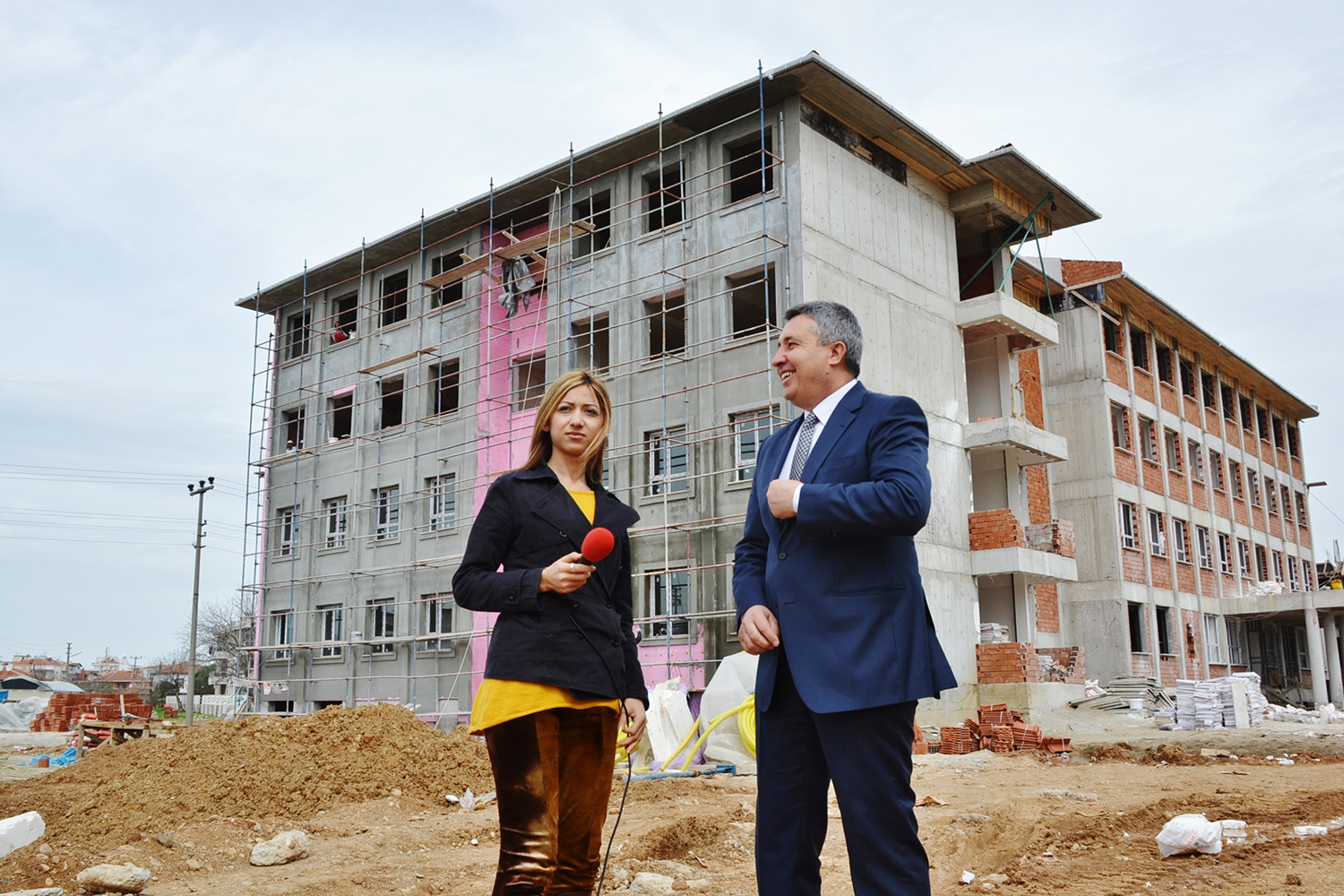 Ergun Özgün: ‘’Menderes’teki bütün okulların tamirat, tadilat, malzeme gibi bütün ihtiyaçlarını karşılıyoruz. Bir de Menderes Belediyesi gerçekten de görevi olmayan bir konuya da el attı. Meslek lisesi yapıyoruz ilçemize. Havza koşulları burada koruma kültürünü de beraberinde getiriyor. Bölgede aklınıza ne geliyorsa kısıtlanıyor. Bu insanların gelecekle ilgili ekonomik beklentileri geriye düşüyor. Okullarda insanlara el becerileri kazandıralım istedik. Çok ciddi bir meslek lisesi başlattık. Aziz bey anlatınca konuya ilgi duydu, masrafı karşılamak istedi. İmalatının yaklaşık ana binanın bütün masraflarını büyükşehir belediyesi karşılıyor. Ortaklaşa güzel bir iş yapıyoruz. Eğitimin işi olmasına rağmen belediyemiz yapıyor bunu.’’