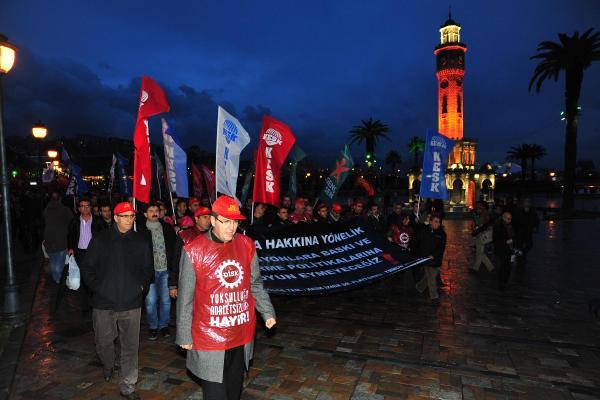 İzmir'de DİSK Ege Bölge Temsilciliği, KESK İzmir Platformu ve TMMOB İzmir İl Koordinasyon üyeleri, Çağdaş Hukukçular Derneği'ne üye avukatların gözaltına alınması ve tutuklanmasını düzenledikleri yürüyüş ile protesto etti.