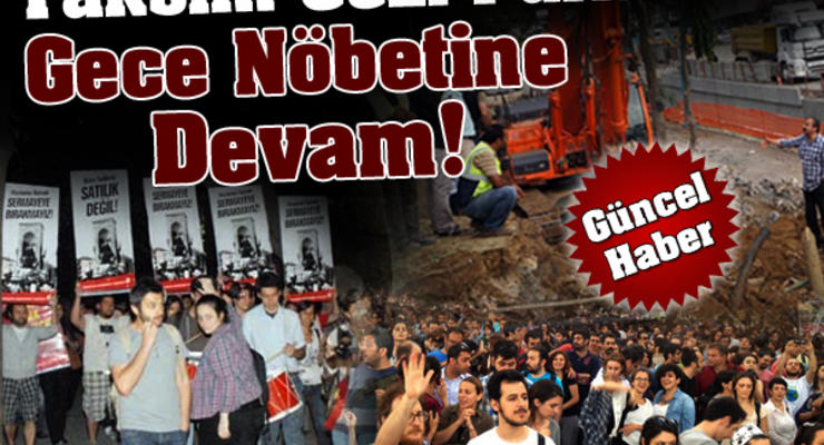 Parka yapılan kazı müdahelesinin BDP İstanbul Milletvekili Sırrı Süreyya Önder tarafından durdurulmasının ardından milletvekilleri parkta nöbete başladı. CHP Milletvekilleri İlhan Cihaner, Melda Onur ve Müslüm Sarı gece boyunca yıkıma karşı parkta nöbet tutacak.