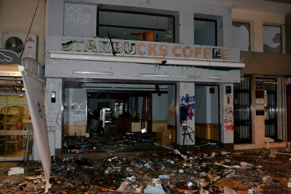 İzmir'de Gezi Parkı'na destek Gündoğdu Meydanı'nda karnavala dönüştü. Geçtiğimiz hafta kalabalık polisle sık sık karşı karşıya gelirken, emniyet güçleri ve eli 'sopalı' sivillerin uyguladığı şiddet direnişin önüne geçti. Birçok işyeri provokatörlerin saldırısına uğrarken en büyük zararı İstiklal'de direnişçileri içeri almayan Starbucks'ın Alsancak şubesi gördü.