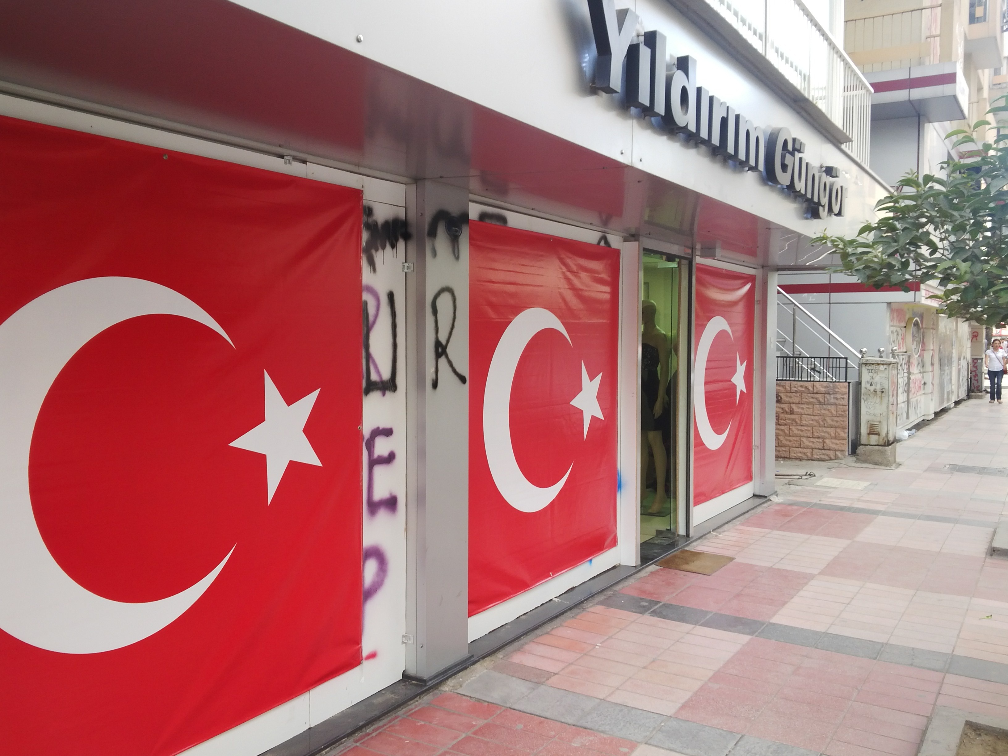 İlk akşam kafeteryanın camları kırıldı, ilerleyen günlerde mekan kullanılamaz hale geldi. Alsancak genelinde birçok mağazanın camlarına spreylerle yazılar yazıldı. Yaşanan olayların ardından bazı işyeri sahipleri dükkanlarını kapatma yoluna gitti. Dükkanlarına zarar gelmesini istemeyen esnaf vitrinlerini ve giriş kapılarını Türk Bayrakları ile donattı. Saldırıların odağı olabilecek McDonals ve Burger King gibi fastfood restaurantlarının da hem içini hem de dışını bayraklarla donatması ise dikkatlerden kaçmadı.