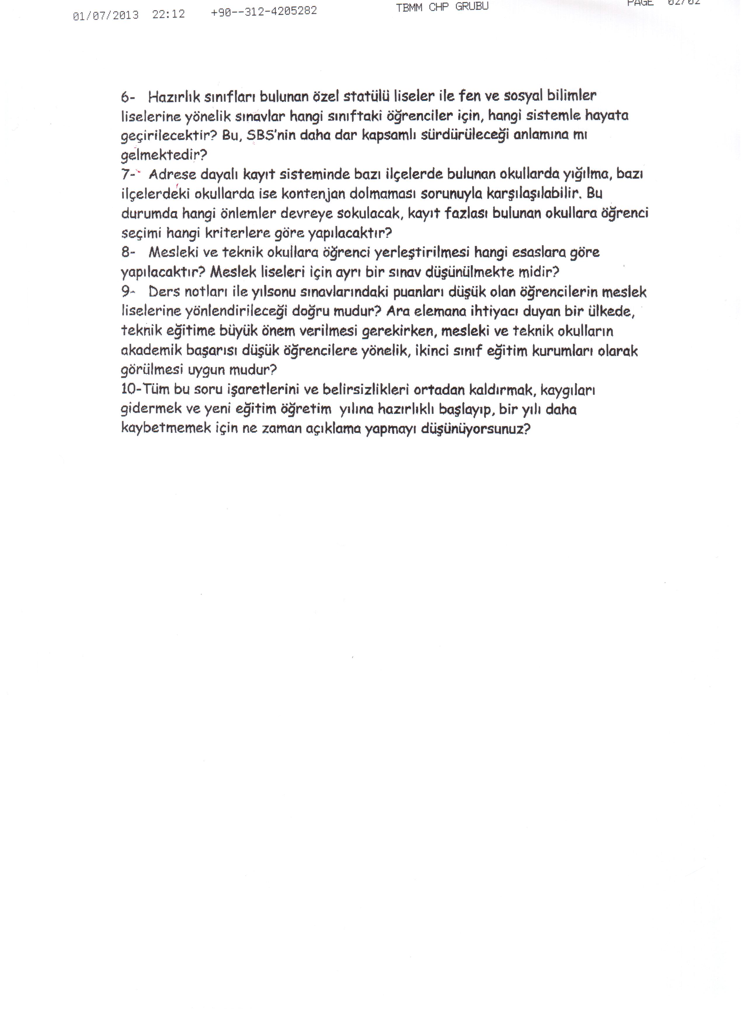 “1- Eğer Anadolu liselerine ilköğretim kurumlarında olduğu gibi adrese dayalı kayıt yapılacak ise, neden merkezi sınav ya da sınavlara gereksinim duyulmuştur?