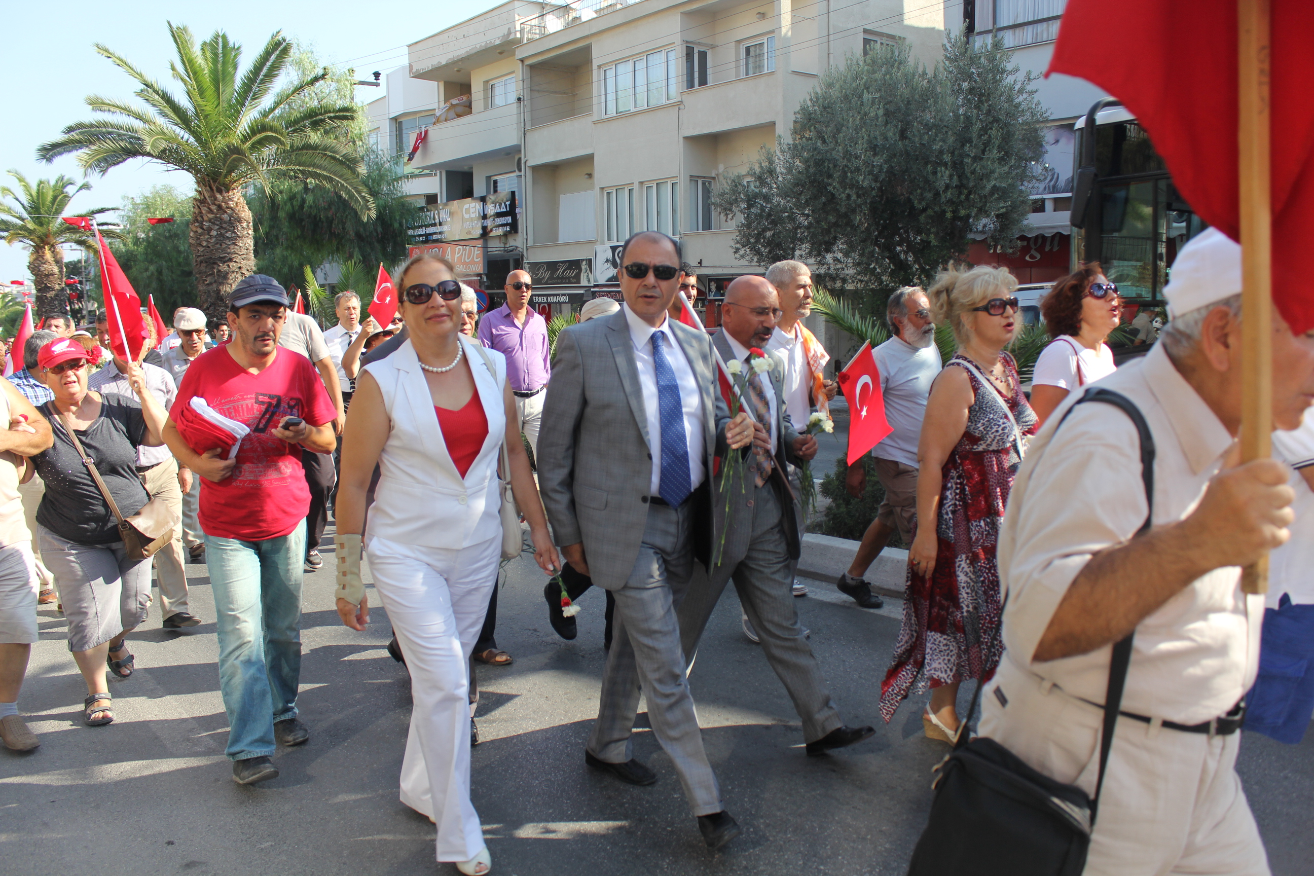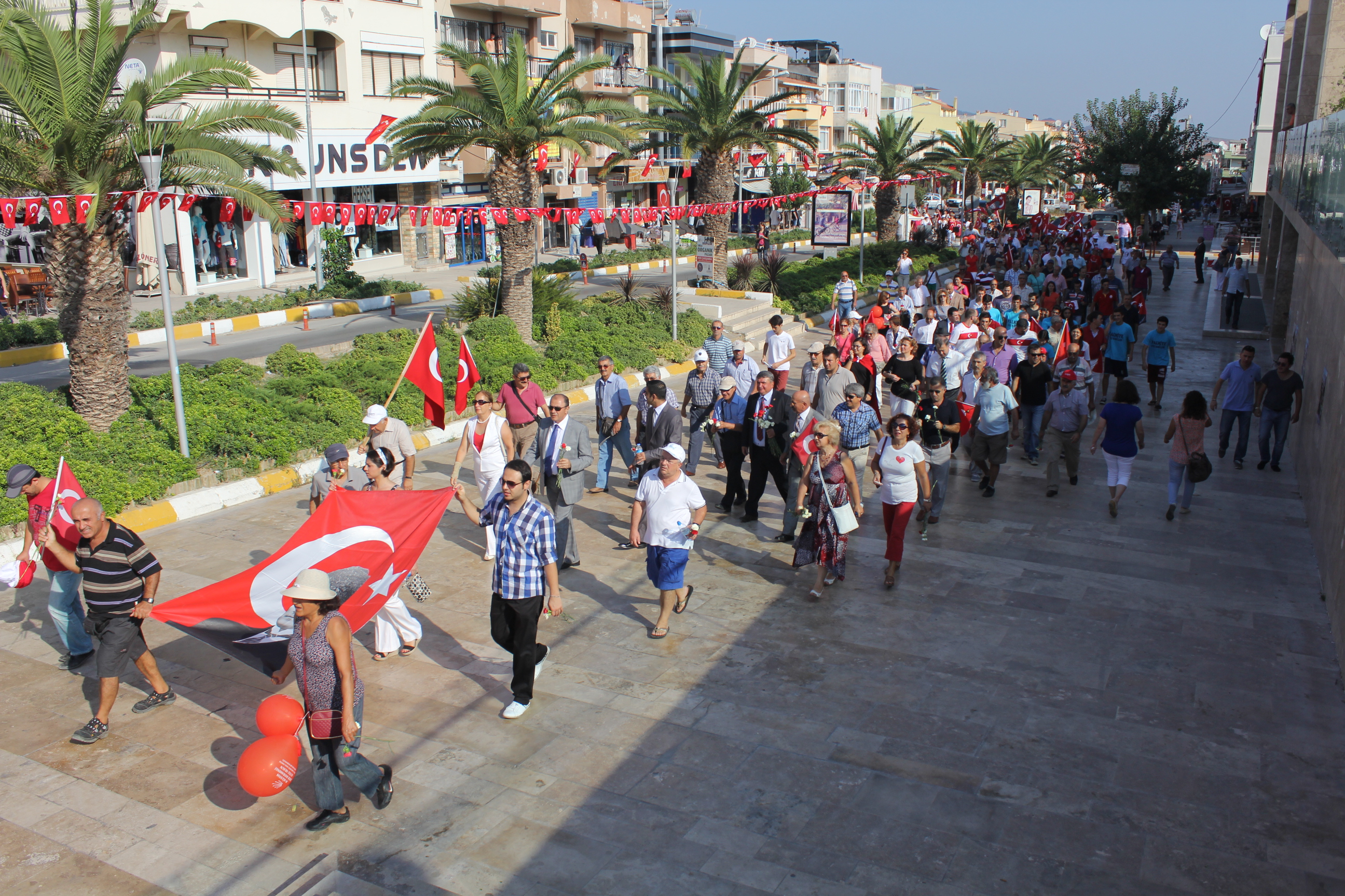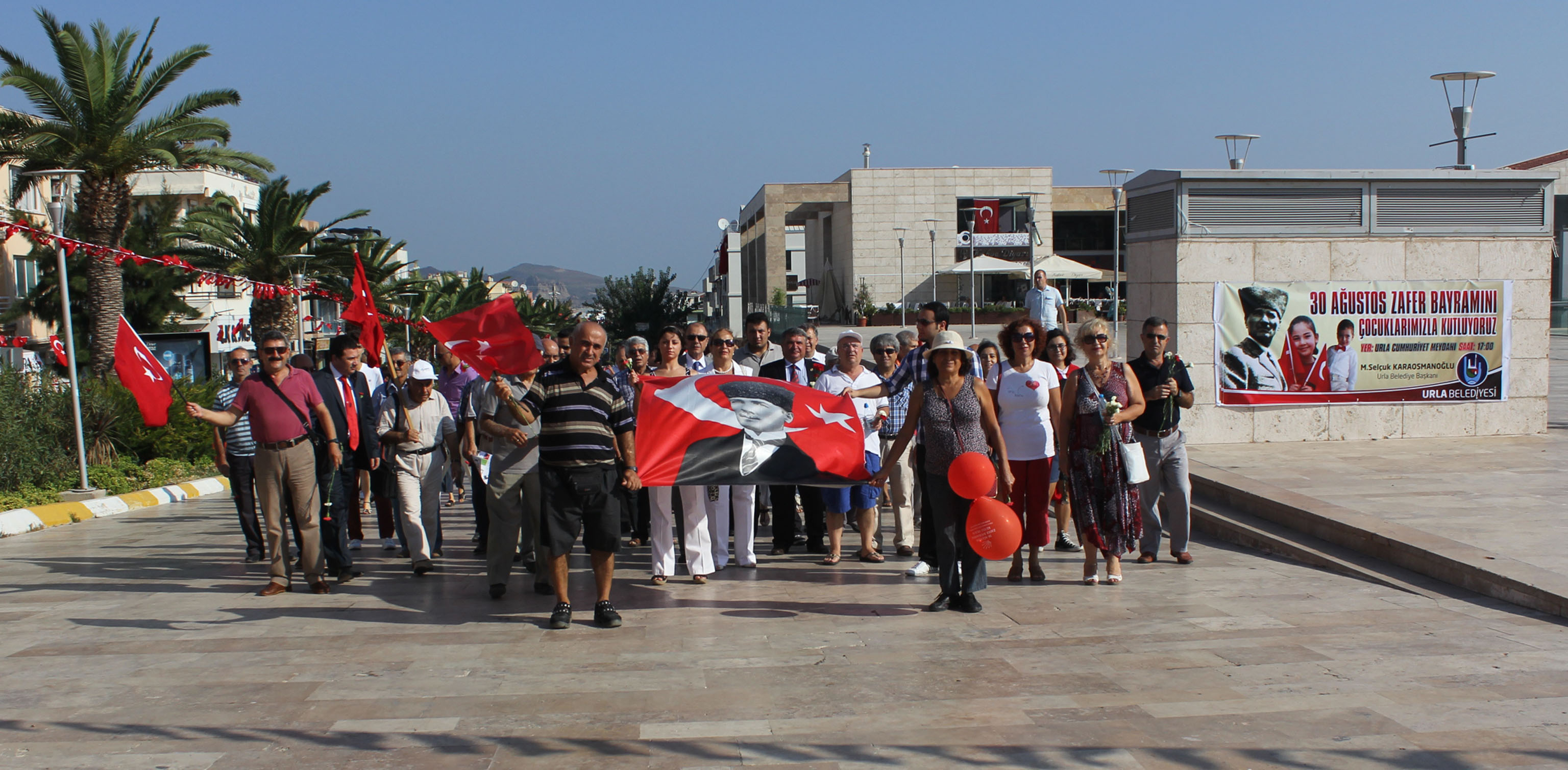30 Ağustos Zafer Bayramı’nın 91. yıldönümü coşkuyla kutlandı. Türkiye Cumhuriyeti’nin temellerinin atıldığı, Türk milletinin bağımsızlık ve özgürlük mücadelesinin simgesi olan Zafer Bayramı kutlama etkinlikleri Atatürkçü Düşünce Derneği Urla Şubesi tarafından organize edilen “Zafer Yürüyüşü” ile başladı. Jandarma Kavşağı’ndan Cumhuriyet Meydanı’na yapılan Zafer Yürüyüşü sonrası tören Urla Cumhuriyet Meydanı’ndaki Atatürk Anıtı önünde devam etti. Atatürk Anıtı’na çelenk sunulması, saygı duruşu ve İstiklal Marşı’nın söylenmesinin ardından Urla Kaymakamı Şehmus Günaydın makamında Garnizon Komutanı Albay A. Mertol Aksungar ve Belediye Başkanı M. Selçuk Karaosmanoğlu ile birlikte tebrikleri kabul etti.