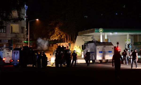 Antakya’nın Armutlu Mahallesi Gündüz Caddesi’nde toplanan kalabalık grup, sloganlar atarak şehir merkezine yürümek istedi. Çevik kuvvetle cadde girişinde güvenlik önlemi alınarak grubun yürüyüşü engellendi. Emniyet güçleri, gruba yüşürüyüşün izinsiz yapıldığı ve dağılmaları için anons yaptı. Anonsa uymayan ve taş atan gruba TOMA araçlarıyla basınçlı su sıkıldı. Gaz bombası atılan kalabalık grup dağıtılmaya çalışılıyor.