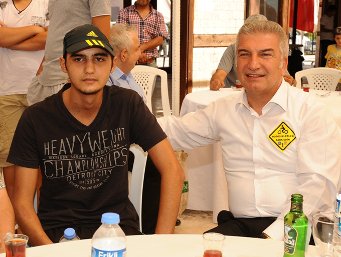 Motosiklet Festivali’nin on gününde, Yamanlar Piknik Alanı’ndaki buluşmanın bir de sürpriz konuğu vardı. Gezi Parkı eylemleri sırasında başına isabet eden polis fişeği ile yaralanıp, uzun süre tedavi gören Bayraklılı genç Mustafa Ali Tombul’da alana geldi. Arkadaşlarıyla “Doğaya Şiddete Hayır” demek için alanda olan Mustafa Ali, Başkan Durak’la da sohbet etti.