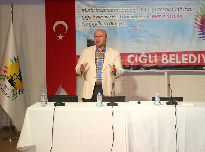 Çiğli Belediyesi’nin konferans salonunda yapılan toplantıda Başkan Solak, Çiğli’de yapılan anketlerde belediye çalışanlarının performansından vatandaşın yüksek oranda memnuniyetini dile getirdiğini söyledi. Ancak memnuniyet düzeyini artırmak istediğini ve belediye çalışmaları hakkında personelin daha fazla bilgi sahibi olması gerektiğini belirten Başkan Solak, zaman zaman böyle koordinasyon toplantıları yapacağını söyledi.