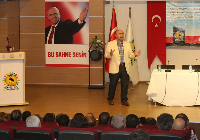 Çiğli Belediye Başkanı Metin Solak, hizmetleri daha etkin ve verimli kılabilmek için tüm belediye personeliyle toplantı yaptı. Birbirinden farklı birimlerde çalışan personelin, belediyenin tüm faaliyetleri ve hizmetlerinden haberdar olması amacıyla gerçekleştirilen toplantıda Başkan Solak, belediyenin devam eden ve yapılacak projelerini yaklaşık iki saat süren toplantıda memur ve işçilere anlattı.