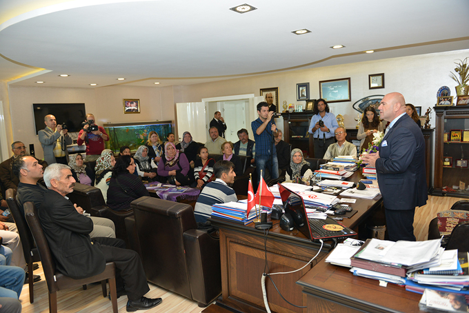 Gurup adına konuşan Hüseyin Ayvalı, Ankara’da CHP Genel Merkezi’nde başta Genel Başkan Kılıçdaroğlu olmak üzere herkesin kendilerine çok yakın davrandığını ve sorunlarıyla yakından ilgilendiğini söyledi. Diğer siyasi partilere de uğradıklarını ancak kimsenin kendilerini dinlemediğini belirten Ayvalı, “CHP’ye gidince insan olduğumuzu hatırladık. Bizi çok güzel karşıladılar. Genel Başkan bizi bizzat dinledi. Sorunumuza çok insancıl yaklaştı. Başkanımız Metin Solak da Ankara’ya gelerek bizimle bizzat ilgilendi. Hepimiz çok üzüldük. Zeytin ekmek yiyerek evimize sahip olmuştuk. Elimizden giderse çok üzülürdük. Şu an biz çok mutluyuz. Bize bu duyguları yaşattığı için Başkanımız Metin Solak’a çok teşekkür ediyoruz. Hep kendisinin yanında ve destekçisiyiz” dedi.
