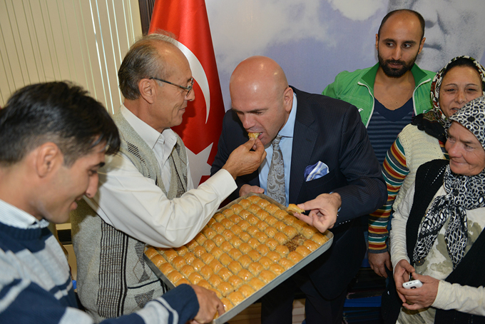 Evlerinin icra yoluyla satılacağını belirterek geçtiğimiz hafta içinde CHP Genel Merkezi önünde oturma eylemi yapan Çiğli Şirintepe Konut Yapı Kooperatifi’nin sorununu Çiğli Belediye Başkanı Metin Solak çözdü. Mutlu sona ulaştıkları için ellerinde çiçeklerle Başkan Solak’a teşekküre gelen kooperatif sakinleri, kendi elleriyle Başkan Solak’a baklava yedirdiler.