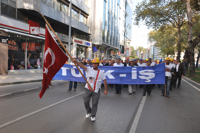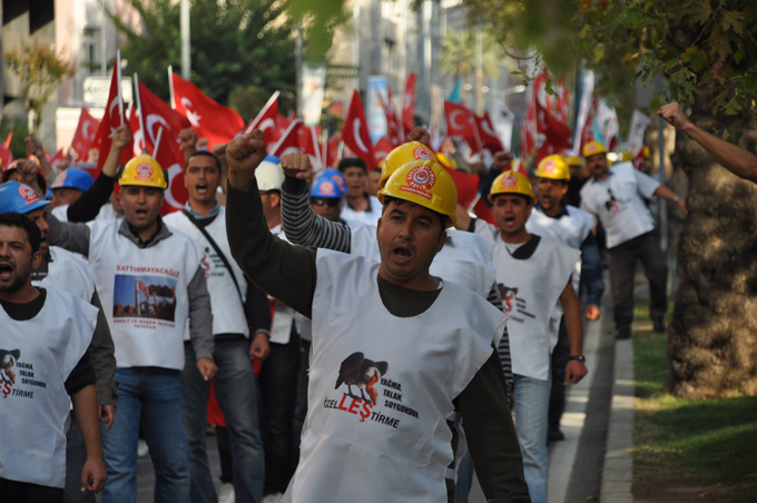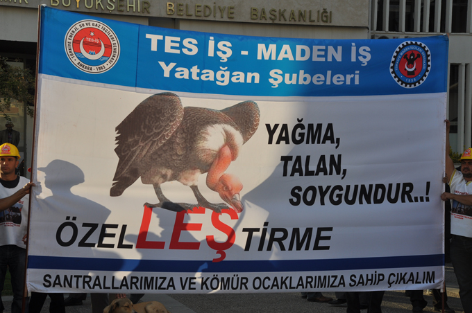 İzmir bugün Yatağan, Kemerköy ve Yeniköy termik santralleri ile kömür işletmelerinin özelleştirilmesine karşı çıkan maden-santral işçilerinin eylemine sahne oldu. Başlarına taktıkları baretlerle Basmane Meydanı'nda toplanan binlerce insan hükümeti protesto ederek kortej halinde sloganlarla yürüyüşe başladı. Grubun yürüyüşüne çevik kuvvet ve bir de TOMA öncülük ederken, Gazi Bulvarı'nı kullanan grup Konak Pier Köprüsü'nü kullanarak Konak Meydanı'na geldi. Binlerin yürüyüşü yaklaşık 1 saat sürdü.