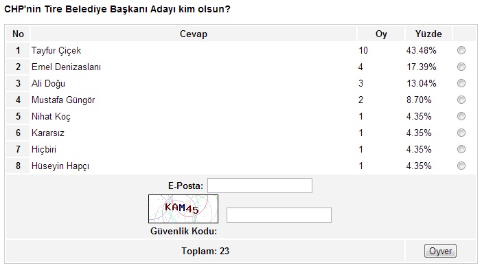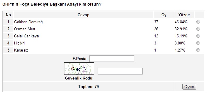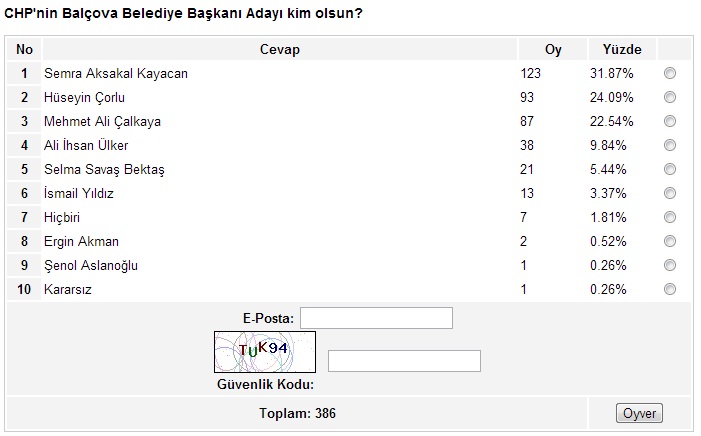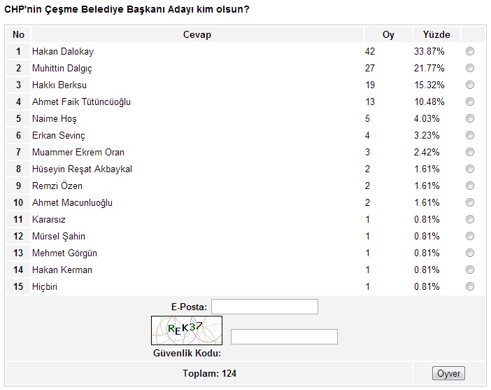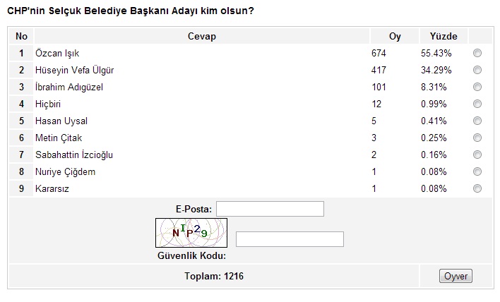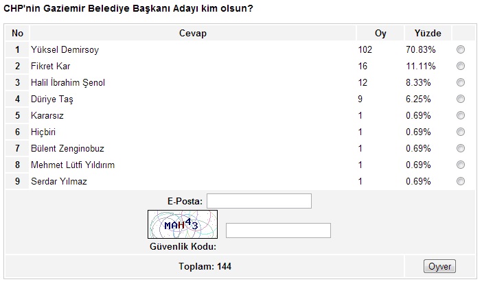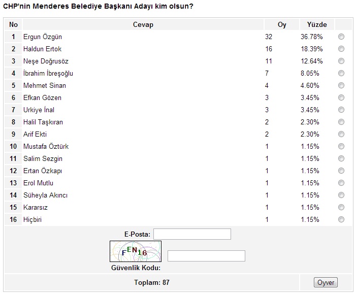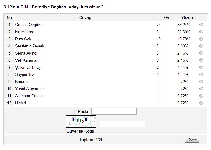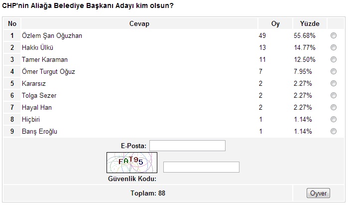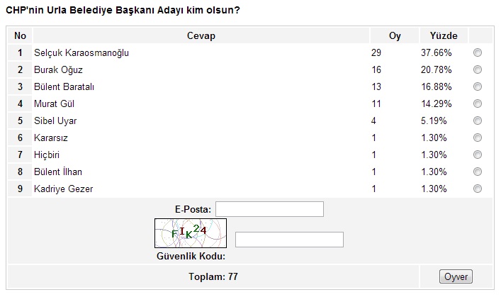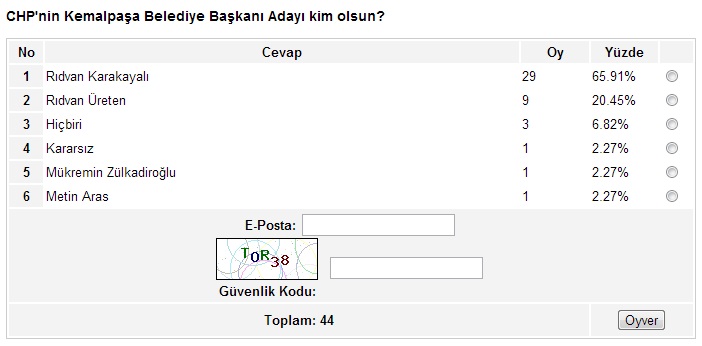 Ege’nin Sesi-Ayten BODUR/ Ege’nin Sesi internet sitesinin yaklaşık bir aydır sürdürdüğü anket çalışmasında sona gelindi. İzmir’in metropol ilçeleriyle başlayan, Ege’nin Sesi sitesinin okuyucularına sunduğu anket çalışması, son iki hafta içinde kalan 17 ilçenin anketlerinin de oylanmasıyla birlikte son buldu.