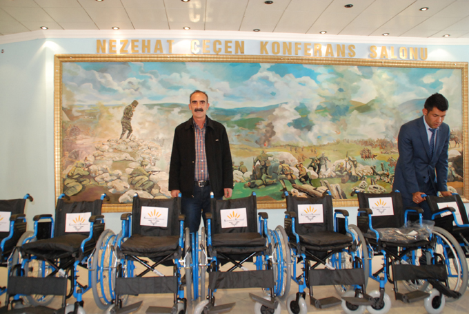 Karabağlar Belediyesi ve Karabağlar Kent Konseyi, Ağrı’da 15 tekerlekli sandalye ve görme engelliler için 12 adet beyaz baston teslim etti.
