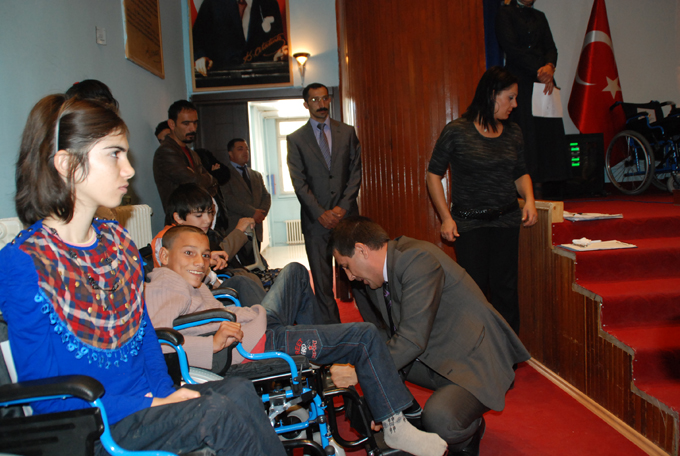 Törende ilk konuşmayı yapan Çabaş, “İzmir’den sesimizi duyarak şehrimize gelen Uğur Yelekli ve ekibine çok teşekkür ederiz. Dileriz ülkenin en doğusunda imkansızlıklar içinde yaşayan biz engellilere destekler artar” diye konuştu.