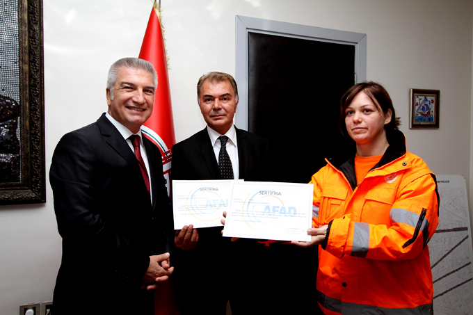 Türkiye’nin köpekli arama timine sahip ilk ilçe belediyesi Karşıyaka’nın sokaklardan gelen arama kurtarma köpeği Rüzgar’ın belgesini Belediye Başkanı Cevat Durak aldı. 2 yıl süren eğitimin ardından 18-28 Kasım tarihleri arasında yapılan sınavda başarılı olan Rüzgar, “Köpekli Arama Kurtarma Timleri Eğitim ve Görev Yeterlilik” belgesi almaya hak kazandı. Rüzgar ile birlikte, eğitmeni Işık Şen’de sertifika aldı. İzmir Sivil Savunma Arama Kurtarma Birlik Müdürü Atilla Altunbulak, Belediye Başkanı Cevat Durak’ı makamında ziyaret ederek, Rüzgar ve eğitmeninin sertifikalarını verdi. Rüzgar’ın başarısının kendisini de gururlandırdığını belirten Başkan Durak, “En başından beri Rüzgar’a inancım tamdı” dedi.