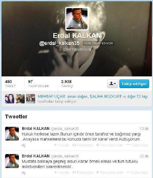 AK Parti İzmir Milletvekili Erdal Kalkan da “Mustafa Balbay'a geçmiş olsun. Karar örnek alınmalı ve tüm tutuklu milletvekilleri salıverilmelidir. Hukuk herkese lazım. Bunun için önce tarafsız ve bağımsız yargı. Anayasa Mahkemesi bu konuda tarihi bir karar verdi. Kutluyorum” dedi.