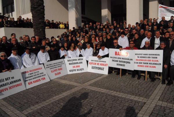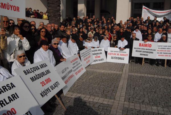 İZMİR'de, 'arsa mağdurları' olarak tanınan çok sayıda kişinin, Balçova'daki 2 milyon metrakarelik alandaki arsalar için yapılan başvuru üzerine Avrupa İnsan Hakları Mahkemesi (AİHM), ara karar verdi. Bireysel olarak yapılan başvurular, AİHM tarafından, toplu hak ihlali olarak sayılıp, tek dosya altında birleştirildi. Bu kararın ardından, arsa mağdurları beyaz kefen giyip basın açıklaması yaptı.