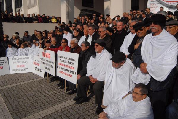 Arsa sahipleri de bu kararla ilgili olarak, beyaz kefen giyerek açıklama yaptı.