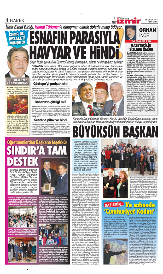 Ege’nin Sesi/ Demokrat İzmir Perşembe günü çıkacak olan sayısında Milliyet Ege yazarı Hamdi Türkmen’e değinirken, Türkmen’e İzmir Esnaf Birliği tarafından ödenen maaş iddialarını yazdı.