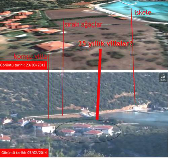 25 Aralık soruşturmasında adı geçen işadamı Mustafa Latif Topbaş, İzmir Urla’daki villaların arazisini 34 yıl önce aldığını ve aynı yıl inşaata başladıklarını ifade etti. Ancak google earth’de aynı bölgenin 1 yıl önceki görüntülerde arazi üzerinde inşaat görünmüyor.