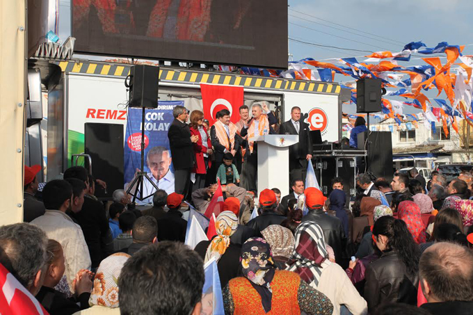 Türkiye’de 8 ay değil, 8 yıl değil 11 yıl Ulaştırma Bakanlığı yaptığını sözlerine ekleyen Yıldırım, yıllar boyunca ulaşmadığı erişmediği hiç kimse kalmadığını ifade etti. 780 bin metrekarelik vatan toprağının her yerine gittiğini kaydeden Yıldırım, sözlerini şöyle sürdürdü; Balıkçılar, denizciler, otobüsçüler beni iyi bilir. Marmaray’la iki kıtanın altından 60 metrede İstanbul’un iki yakasını bir araya getirdik. 3’üncü boğaz köprüsü, üçüncü havalimanı, ikinci tüp geçit, Ankara- İstanbul Hızlı Treni, Bolu Dağı Tüneli, Gobit Tüneli, Karahan Tüneli, Kuzgunkıran Tüneli say say bitmez. 17 bin kilometre bölünmüş yol ve dağ gibi sorunların dağ gibi hizmetlere dönüştüğü bir Türkiye. Şimdi yeni bir yol açıldı. 2.5 yıldır sizin milletvekilinizim. Milletvekili olduğum bu şehre Allah nasip ederse sizlerin desteğinizle belediye başkanı olarak aday oldum. Bizim bildiğimiz bir şey var. O da hizmettir. Biz başka bir şey bilmeyiz. İş yaparız. Bugüne kadar hep çalıştık, hizmet ürettik, iş ürettik. Bundan sonra da aynısını yapacağız. Başka hiçbir şey bizden beklemeyin. Adam kayırmak bizde yok. Oy verdi hizmet var, oy vermedi hizmet yok bizim kitabımızda olmaz. Bunu herkesin bilmesi lazım. Olabilir, oy vermeyebilir. O da bu toprakları bekliyor, o da bu topraklara hizmet ediyor. O da insanlara hizmet ediyor, ona da bizim hizmet götürmek borcumuz”.
