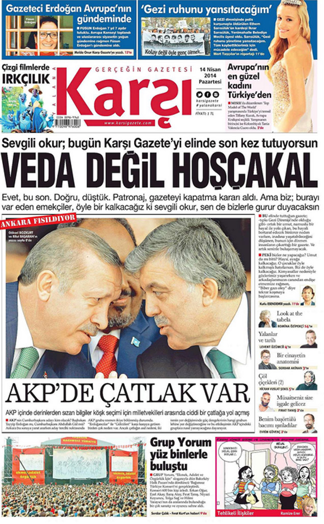 'Veda Değil Hoşçakal' manşetiyle okurlarına bu kararı duyuran Karşı 'Sevgili okur; bugün Karşı Gazete'yi elinde son kez tutuyorsun' diye yazdı...