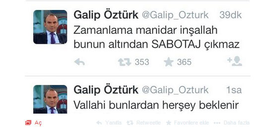 İşte Galip Öztürk’ün o tweetleri…..