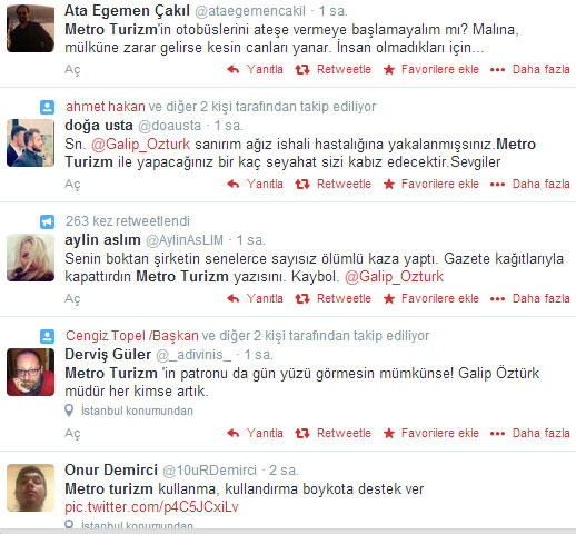Metro Turizm'in patronu Galip Öztürk, Soma'daki maden faciasına ilişkin attığı tweet nedeniyle topa tutuldu.