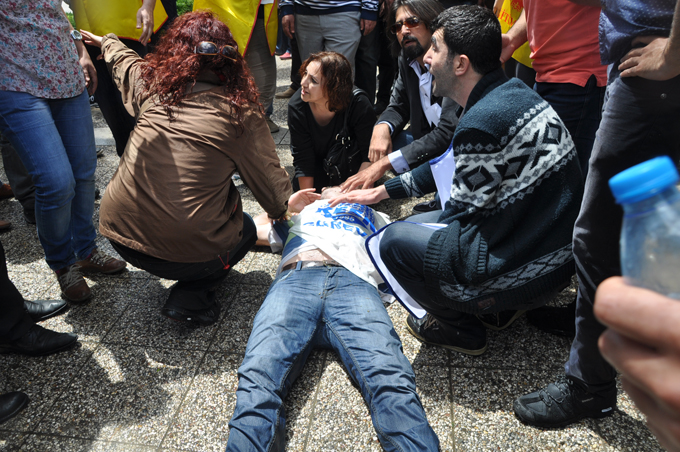 "Her yer Soma her yer direniş", "Türkiye uyuma Soma'ya sahip çık", sloganlarının atıldığı eyleme polisin uyarı yapmadan müdahalede bulunması dikkat çekti.