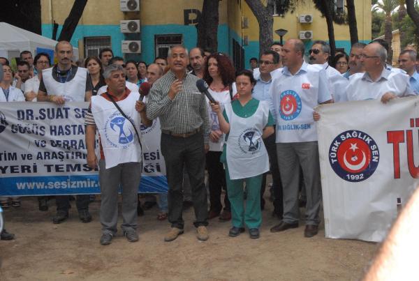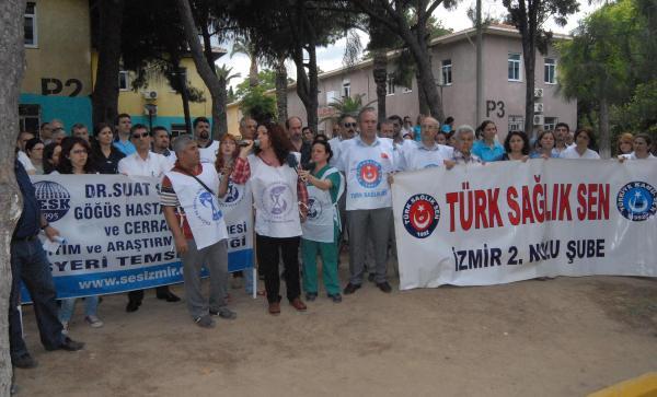 CHP Milletvekili Musa Çam'ın da destek verdiği sağlık çalışanları adına açıklama yapan SES İşyeri temsilcisi Vildan İnan, "Hastane 1910 yılından beri önce genel hastane sonrasında ise göğüs hastalıkları hastanesi olarak hizmet vermektedir. Türkiye'deki üç göğüs hastanesinden birisidir. Ege Bölgesi'ndeki göğüs hastalarının üçde birine hizmet vermektedir. Gerek bilimsel gerekse ekonomik olarak herhangi bir sorunu olmayan hastanemizin, birleşme adı altında sistematik bir hasteneye dahil edilmesi, onun yok olması anlamındadır. Tepecik Eğitim Hastanesi'nin zaten yoğun olan polikliniklerine devir olacak olan hastalarımız da mağdur olacaktır. Yaklaşık 80 dönümlük bir arazide bulunan hastanenin yerine acaba alışveriş merkezi mi yapılacağı aklımıza gelmektedir. Ya da özelleştirmede mi kullanılacaktır? Hastanenin kapatılmasıyla, azaltılan yatak sayısı ve yok edilen deneyimli kadroların ülkemiz sağlığında ciddi kayıplara yol açacağını düşünüyoruz" dedi. Daha sonra hastane bahçesinde kurulan çadırda imza kampanyası da başlatıldı.