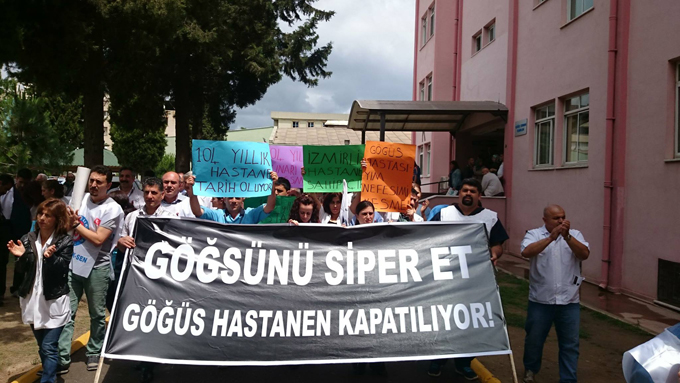 Dr. Suat Seren Hastanesi çalışanları, hastanelerinin kapatılmaması için topladıkları binlerce imzayı, yetkilileri gönderdi. Grev uyarısında bulundu. Kamu Hastaneleri Birliği Genel Sekreterliği tarafından hastanelerinin kapatılacağı açıklamasından sonra eylemlere başlayan Dr. Suat Seren Göğüs Hastalıkları ve Göğüs Cerrahisi Hastanesi çalışanları, kapatılmaya karşı hastalardan ve hasta yakınlarından binlerce imza topladı. Topladıkları imzaları yaptıkları eylemle Cumhurbaşkanlığı’na, Başbakanlığa, Sağlık Bakanlığı’na ve ilgili milletvekillerine yolladılar. Yürüyüş için hastane bahçesinde toplanan sağlık çalışanlarına hasta yakınları da destek verdi. Eyleme sağlık çalışanlarının örgütlü olduğu SES İzmir Şubesi ve İzmir Tabip Odası da destek verdi.