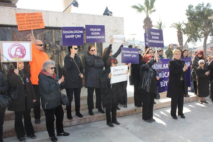‘Son bir kez konuşmak için değil, artık biz kadınların da bu yaşamda var olduğunun farkına varılması için konuşmalıyız. Bizlere yapılan şiddetin, nefretin durması, ceza kanunlarında caydırıcı düzenlemelerin yapılması için konuşmalıyız. Özgecan kardeşimiz henüz 20 yaşında, yaşamın baharındaydı. Kirli eller onu katlettiler. Hafta sonu sevginin günüydü. Sevginin günü karanlığa büründü. 20 yaşında gencecik bir bedenin vahşice katledilişine tanık olduk. Artık korkuyoruz. Dolmuşa, otobüse tek başına bizler nasıl bineceğiz, çocuklarımız nasıl binecek. Sokaklarda nasıl yürüyeceğiz. Kanun yapanlara sesleniyoruz. Bu acı son olsun’