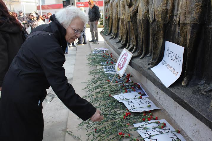 Basın açıklamasının ardından Özgecan’ın anısına Atatürk Anıtı’na karanfil bırakıldı.
