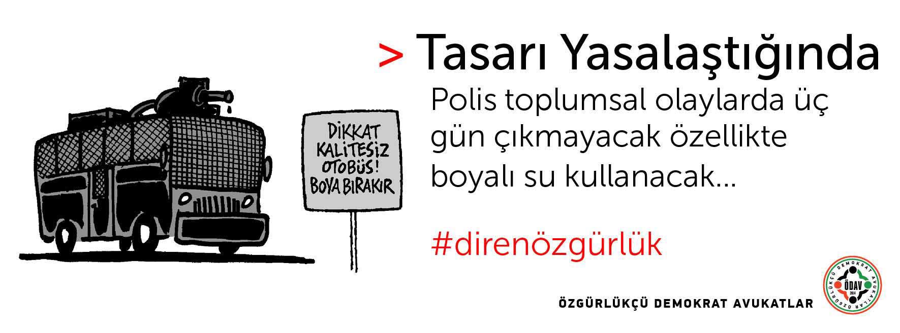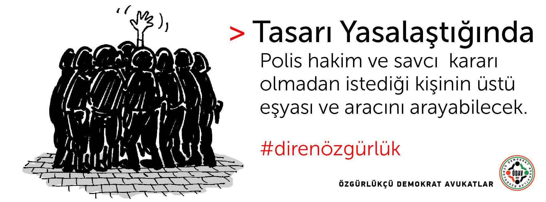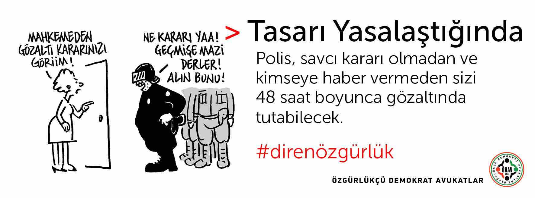 Özgürlükçü Demokrat Avukatlar İç Güvenlik Paketi’nin yasalaşması durumunda neler yaşanabileceğini çizimler eşliğinde anlattı. Meclis’de görüşülmeye başlayan ve şu ana kadar muhalefet partilerine rağmen 10 maddesi geçen İç Güvenlik Paketi’ni Özgürlükçü Demokrat Avukatlar geçerse neler yaşanabileceğini #direnözgürlük Hashtag’iyle çizimler eşliğinde paketin özetini sundu. Çizimler ve avukatlara göre paket yasalaşırsa olabilecekler şöyle:
