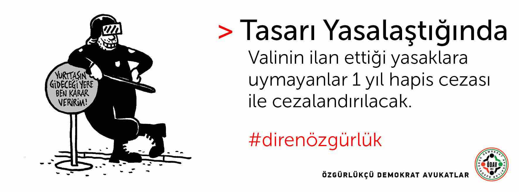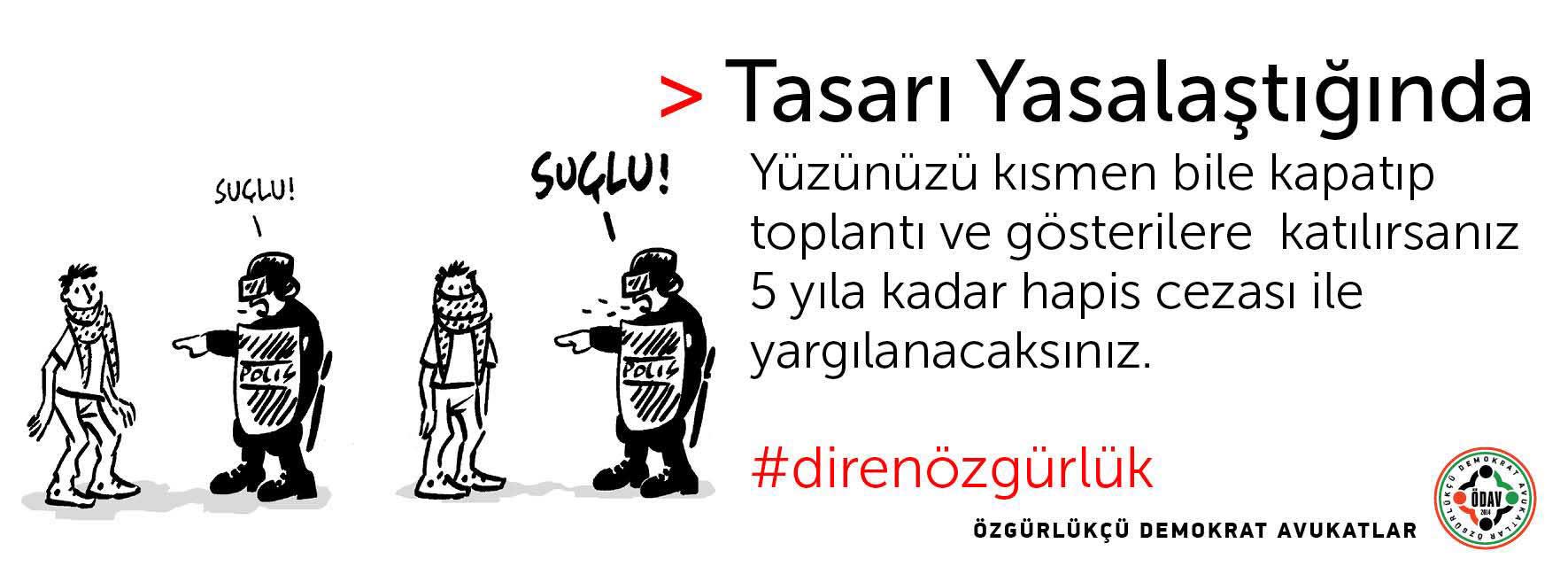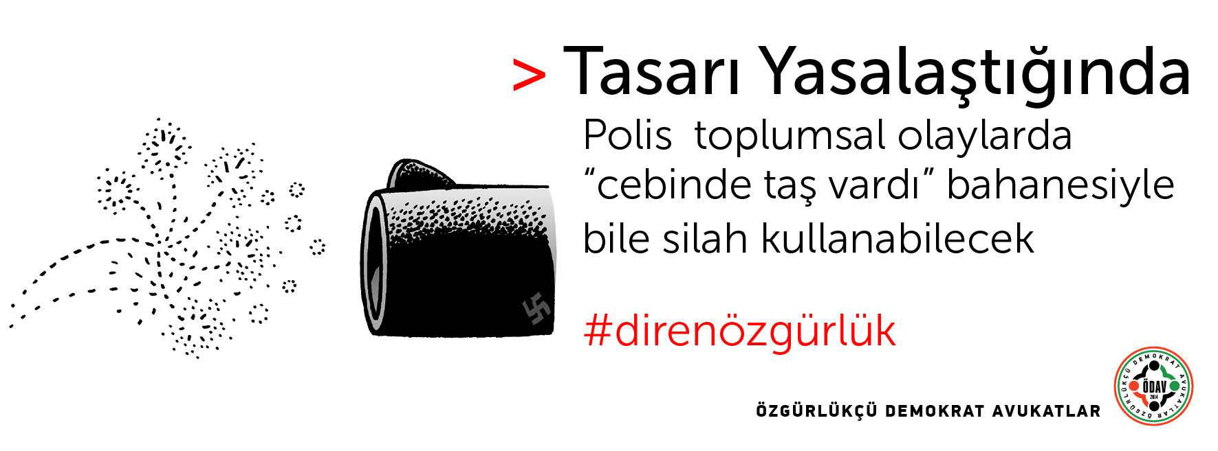 Özgürlükçü Demokrat Avukatlar İç Güvenlik Paketi’nin yasalaşması durumunda neler yaşanabileceğini çizimler eşliğinde anlattı. Meclis’de görüşülmeye başlayan ve şu ana kadar muhalefet partilerine rağmen 10 maddesi geçen İç Güvenlik Paketi’ni Özgürlükçü Demokrat Avukatlar geçerse neler yaşanabileceğini #direnözgürlük Hashtag’iyle çizimler eşliğinde paketin özetini sundu. Çizimler ve avukatlara göre paket yasalaşırsa olabilecekler şöyle: