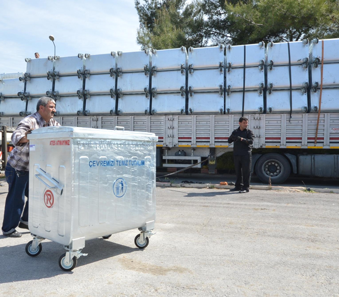 Temiz ve sağlıklı bir kent için ilçe belediyelerine geçtiğimiz yıllarda 18 bin adet çöp konteyneri dağıtan İzmir Büyükşehir Belediyesi, bu yıl 20 bin adet daha çöp konteyneri alarak dağıtımına başladı. 770 litrelik, TSE’ye uygun, galvaniz kaplamalı metal konteynerlerin dağıtımında, turizm yoğunluğu nedeniyle sahili olan ilçelere öncelik verildi. Foça, Çeşme, Dikili, Urla, Seferihisar, Karaburun, Aliağa, Selçuk, Menderes ve Güzelbahçe’de dağıtımın tamamlanmasının ardından diğer ilçelerde dağıtım başlayacak. İlçelerin nüfus yoğunluğuna göre ihtiyaç duyulan adetlerde gerçekleşen dağıtımların 2 Eylül 2015 tarihinde tamamlanması planlanıyor. İlçe belediyelerinin kullandığı çöp toplama kamyonlarının özelliklerine göre farklı sistemlerde imal edilen çöp konteynerleri, ilçelerde evsel atıkların daha hızlı ve sağlıklı toplanmasına olanak sağlıyor.