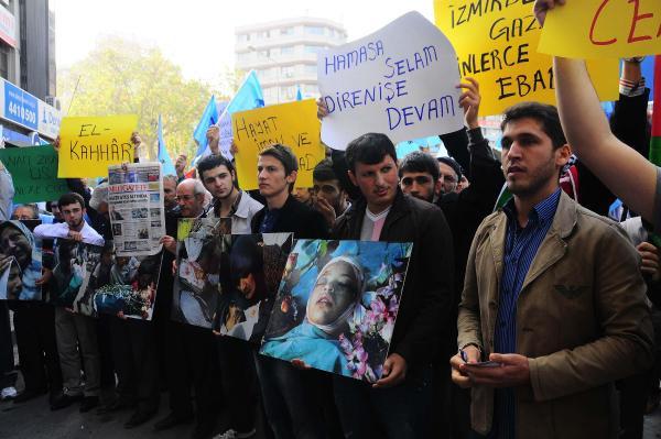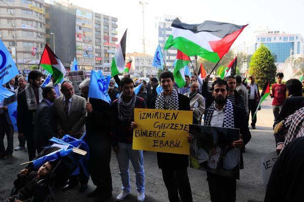 İZMİR'de, Anadolu Gençlik Derneği üyeleri, İsrail'in Gazze'ye yönelik başlatığı saldırıları protesto etti.