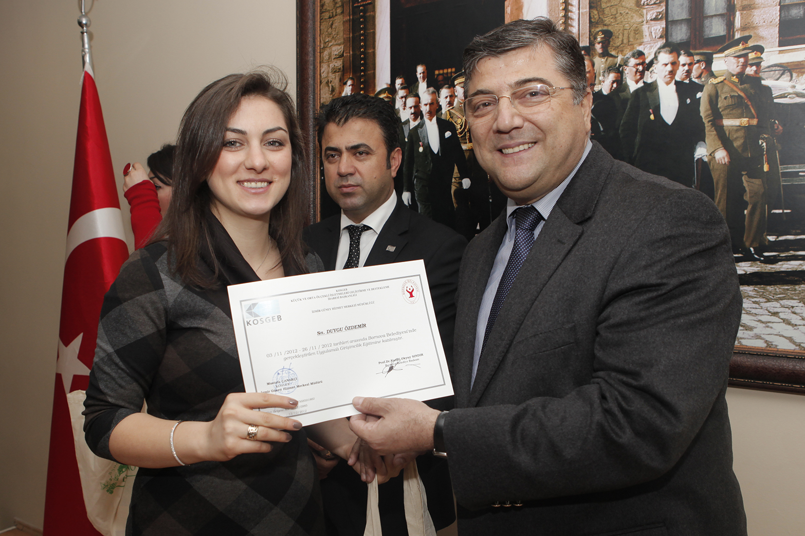 Bornova Belediyesi’nin Küçük ve Orta Ölçekli İşletmeleri Geliştirme ve Destekleme İdaresi Başkanlığı (KOSGEB) ile birlikte başlattığı “Uygulamalı Girişimcilik Eğitim Programı”nın sertifika töreni Büyükpark’taki Uğur Mumcu Kültür Merkezi’nde yapıldı. Eğitimi tamamlayan 58 girişimci adayının sertifikasını Bornova Belediye Başkanı Prof. Dr. Kamil Okyay Sındır ile KOSGEB Güney Hizmet Merkezi Müdürü Mustafa Çanakçı verdi.