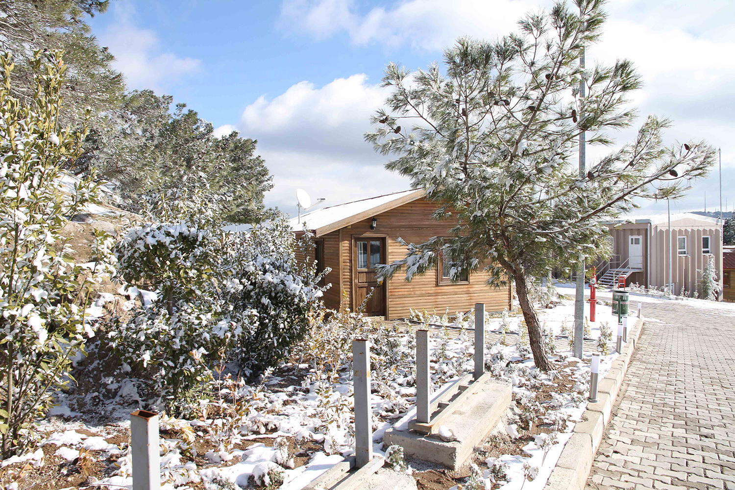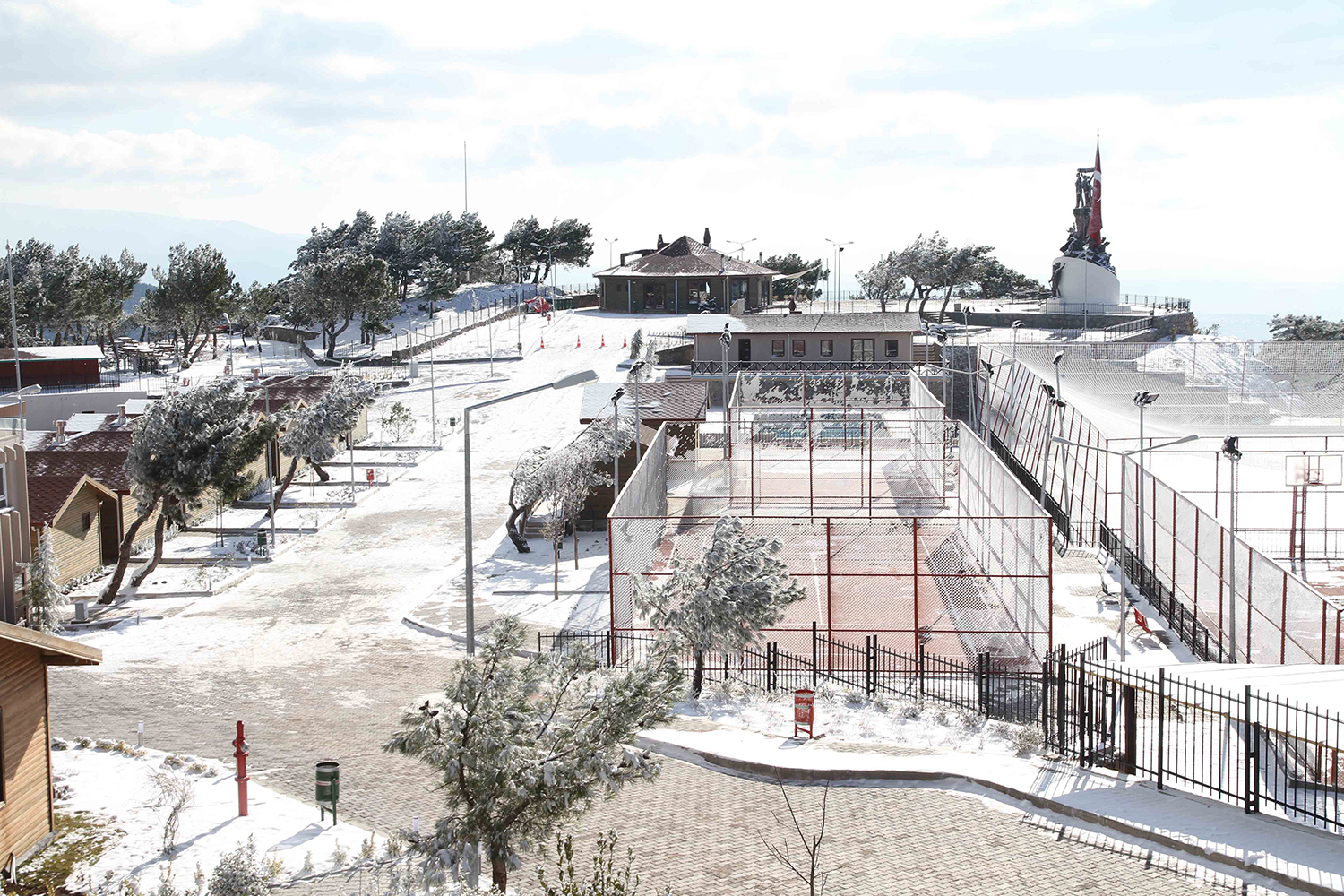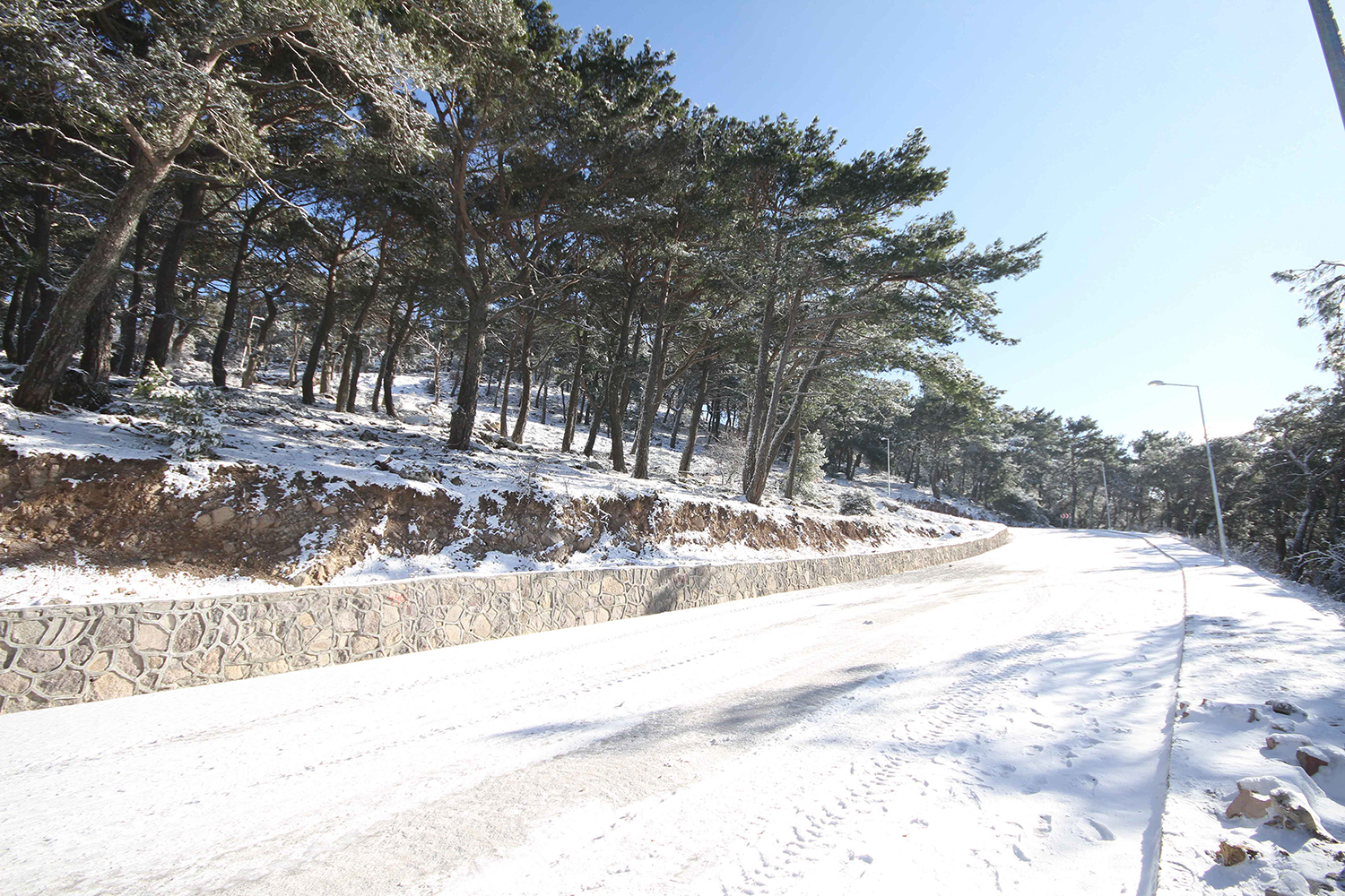 Karşıyaka Belediyesi’nin 2 Kasım’da açılan Yamanlar Gençlik Kamp ve Eğitim Merkezi bugünlerde şiirsel görüntüsüyle büyülüyor. Bin metre yükseklikteki merkez hafta sonunda yağan karla beyaza büründü. Kartpostalları aratmayacak görüntülerin yaşandığı Yamanlar Dağı’nın zirvesinde bu güzelliğe tanıklık etmek isteyen yüzlerce İzmirli, olumsuz hava koşullarına rağmen, hafta sonunda soluğu merkezde aldı. Yamanlar Gençlik Eğitim ve Kamp Merkezi’nin restoran ve kafeteryasında sıcak içecekleri eşliğinde şiirsel güzellikteki manzarayı seyreden İzmirliler, kentin yanı başındaki bu saklı cennette yaşadıkları anların keyfiyle evlerine döndü.