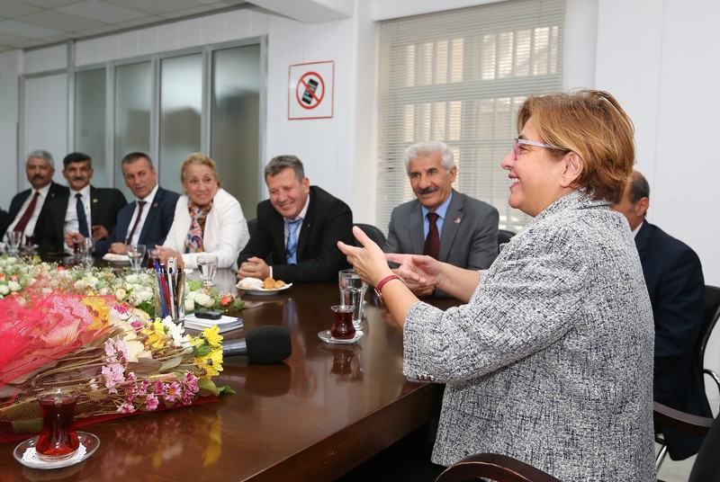 Konak Belediye Başkanı Sema Pekdaş’ı ziyaret eden muhtarlar Anayasa’da haklarının ve iş tanımlarının daha derli toplu yer almasını isteyerek, “Görev var yetki yok. Yetkisiz yetkiliyiz” diye dert yandı.