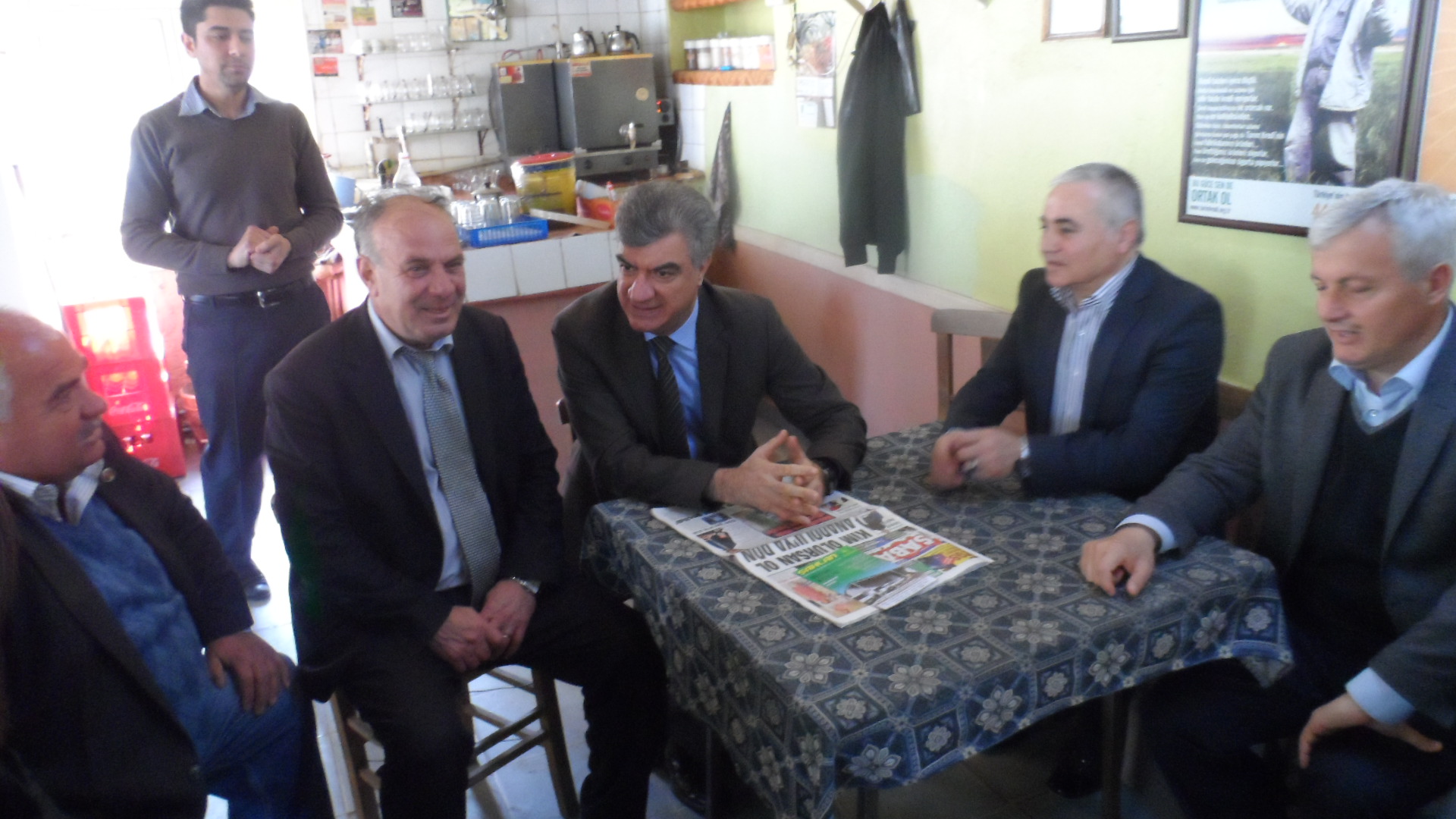 İlçe başkanlığında çay molası veren heyete, Tire İlçe başkanı Mustafa Güngör tarafından çalışmalar hakkında kıs bir brifing verildi. Güngör, Tire’ de yapılan anket sonuçlarına göre ilçe merkezinde CHP’nin oyunun yüzde 32,5, Köylerde ise yüzde 80 olduğu sonucunun ortaya çıktığını açıkladı. Kısa süren ilçe ziyaretinin ardından kendi çalışma programlarını yürütmek için oluşturulan grupları farklı köylere doğru yola çıkarken, il başkanı Engin’in ilk durağı Tire’nin Büyükkale köyü oldu.