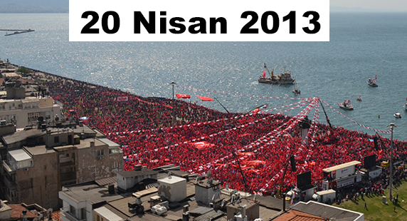 Ege’nin Sesi-Sultan Güngör/ Bugün İzmir kızıla boyandı. MHP’nin organize ettiği Bayrak Mitingine CHP ve İşçi Partisi de destek verdi. Mitinge binlerce kişi katıldı, Gündoğdu meydanı doldu taştı. MHP Lideri Devlet Bahçeli’nin de katıldığı miting devam ederken akıllara geçen yıl 2011 Haziran ayında yapılan AKP mitingi geldi. Yoğunluk AKP’de mi MHP’de mi?