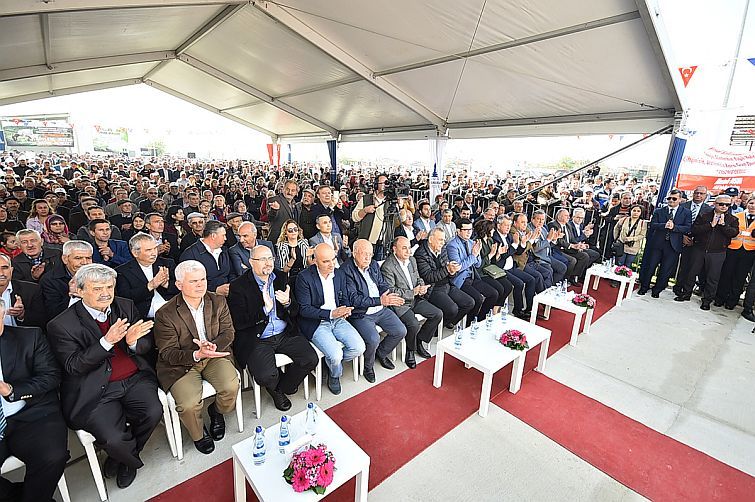 Açılış konuşmalarının ardından Başkan Aziz Kocaoğlu davetlilerle birlikte önce Bergama mezbahasının açılışını gerçekleştirdi, ardından üreticilere yapılacak koyun ve keçi dağıtımının sembolik