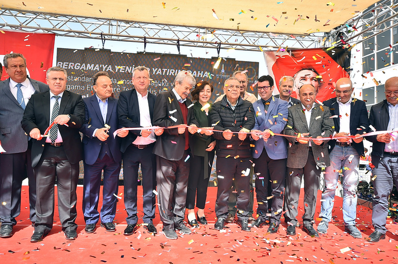 İzmir Büyükşehir Belediye Başkanı Aziz Kocaoğlu, Bergama’da bir günde iki önemli etkinlikte ilçe halkıyla buluştu. Büyükşehir Belediyesi'nin 10 milyon liralık yatırımla tamamladığı AB standartlarındaki modern mezbahanın açılışını yapan Başkan Kocaoğlu, ardından eğitimlerini tamamlayan 122 üreticiye 476 adet koyun ve keçinin dağıtım törenine katıldı.
