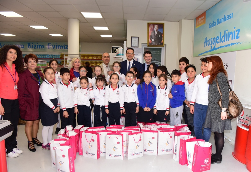 Bornovalı minikler duyarlıklarını gösterdi; Dost Market’in rafları yine doldu, taştı. Yedigün Koleji öğrencileri harçlıklarından biriktirdikleri paralarla aldıkları ürünleri, Bornova Belediyesi’nin Dost Market’e bağışladı. Başkan Olgun Atila, tüm ihtiyaç sahipleri adına öğrencilere teşekkür etti