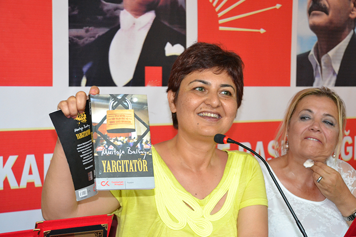 ‘18 Mayıs, 19 Mayıs’ta yorulduk, Karşıyaka Andı’nı duydum süper oldum. Ağzınıza sağlık’ diyerek sözlerine başlayan CHP İzmir İl Kadın Kolları Başkanı Özgün Utku, ‘’Dört dörtlük bir çalışma, 25 mahalle 2 köyden birer tane kadını yılın annesi olarak seçmek bir de Mustafa Balbay’ımızın annesini 28. Anne olarak Melek annemizi seçmek. Bizler biliyorsunuz daha önce Nazilli’ye gitmiştik Melek annemizi ziyarete, bayramlaşmak için. Elini öptük. Bir dahaki bayrama oğlunla geleceğiz dedik o zaman bu zamandır Silivri’deyiz, o zaman bu zamandır biz vazgeçmedik. Balbay vazgeçmedi sizlerin de vazgeçmediğini biliyorum’’ diyerek Mustafa Balbay’ın ‘Yargıtatör’ kitabından birkaç satır okudu, salondaki kadınlar duygu dolu anlar yaşadı. ‘Yorulduysanız ses verin’ diyen Utku’ya kadınlar alkışlarla karşılık verdi.