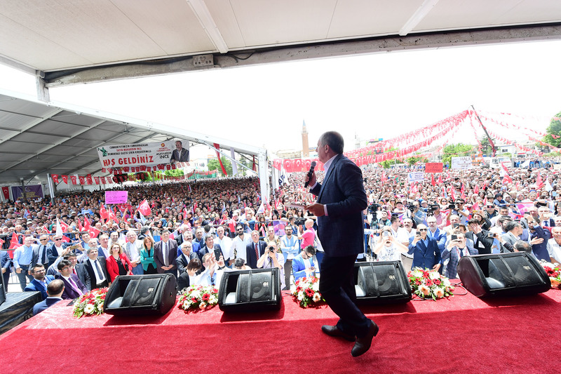 Muharrem İnce Kırşehir’da Neşet Ertaş’ın ünlü türküsüne gönderme yaparak konuşmasına başladı. “Ne diyordu büyük usta ‘Gönül dağı. Ben de diyorum ki Gönül dağının yanına ‘Gönül bağı’ kurmaya geldim” diyerek sözlerine şöyle devam etti;