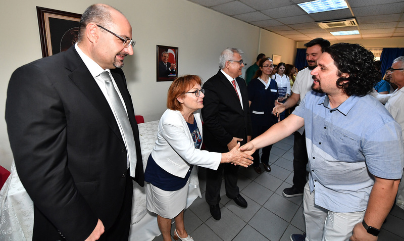 İzmir Büyükşehir Belediye Başkanı Aziz Kocaoğlu’nu eşi Dr. Türkegül Kocaoğlu, Eşrefpaşa Hastanesi çalışanlarının bayramını kutladı. Genel Sekreter Buğra Gökçe ve Başhekim Op. Dr. Ali Serdar Pedükcoşkun ile birlikte personelle tek tek bayramlayan Dr. Kocaoğlu, “Bayramlar birlik ve beraberlik duygularımızın yoğunlaştığı, dargınların barıştığı, tüm insanların sevgiyle kucaklaştığı çok önemli günlerdir. Huzurlu ve barış içinde geçireceğimiz nice bayramlar diliyorum” dedi.