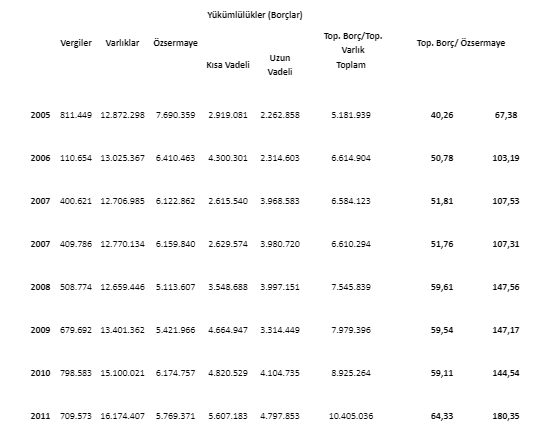 11) Oger, temettüye devam etmek, 2013 yılında özelleştirme bedeli için aldığı kredinin finansmanı için daha büyük bir kredi almıştır. Bu noktadan sonra borçluluk oranı fırlamaya başlamıştır. 2005 yılında Türk Telekom’un toplam borçlarının toplam varlıklarına oranı yüzde 40.26 düzeyindeyken, bu oran 2013 yılında yüzde 70.8`e, 2018’in ilk yarısında ise bu oran yüzde 86,64’e yükselmiştir. Finansal kaldıraç oranı olarak da adlandırılan bu oranın genel olarak yüzde 50 civarında olması kabul edilebilir bulunmaktadır.
